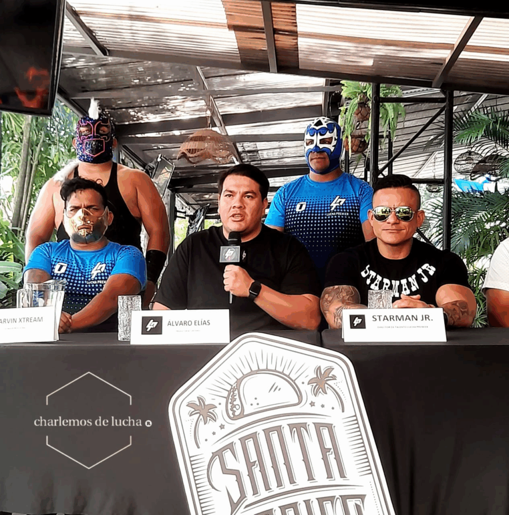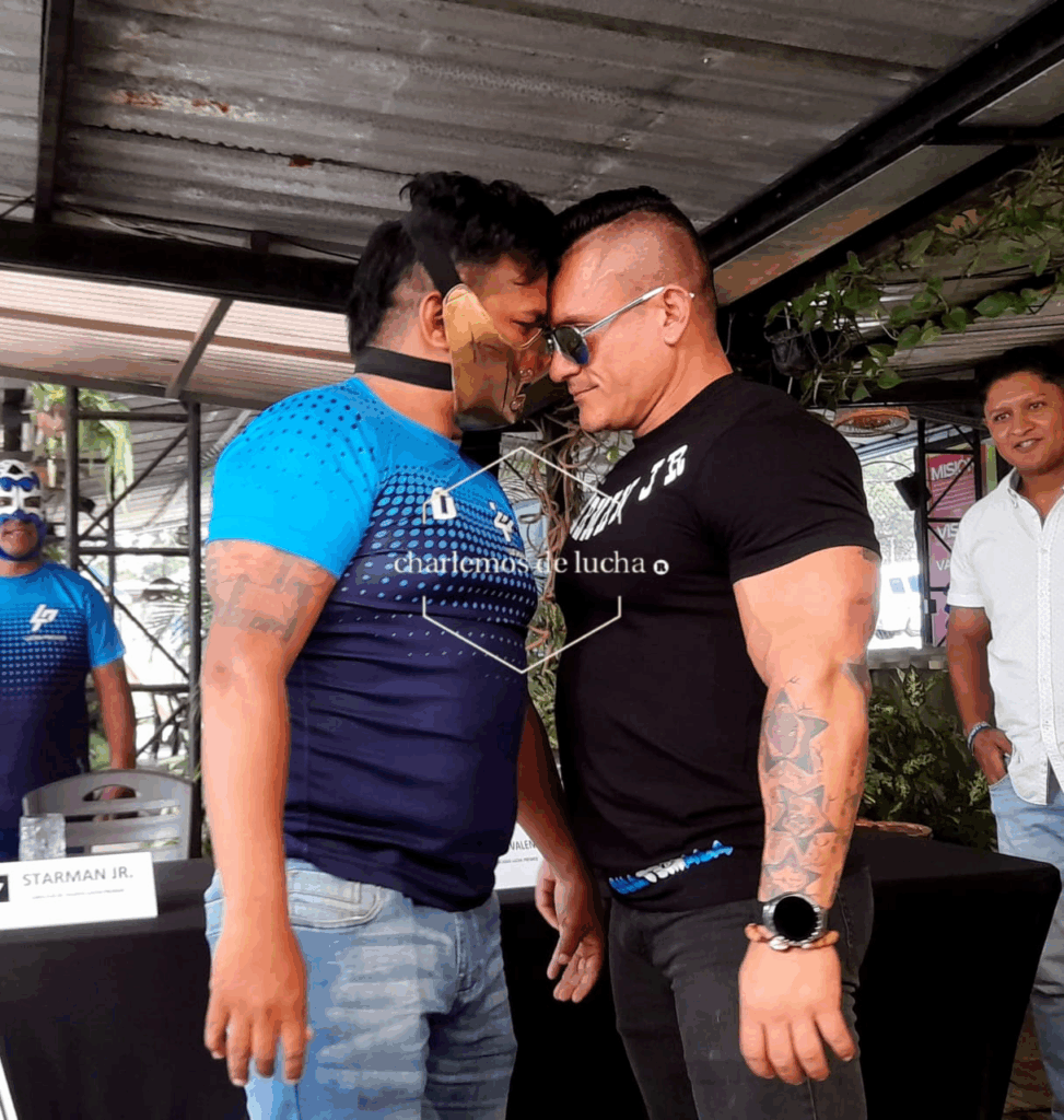 La conferencia también se engalano con dos de los más polémicos y rudos personajes de la lucha libre guatemalteca, como lo son Espíritu Guerrero y El Bandalo Jr, con un linaje de luchadores extenso el cual representarán la noche del 5 de octubre en el estadio Nacional.